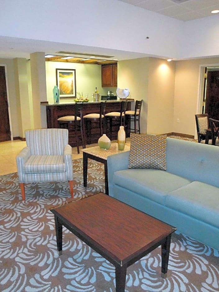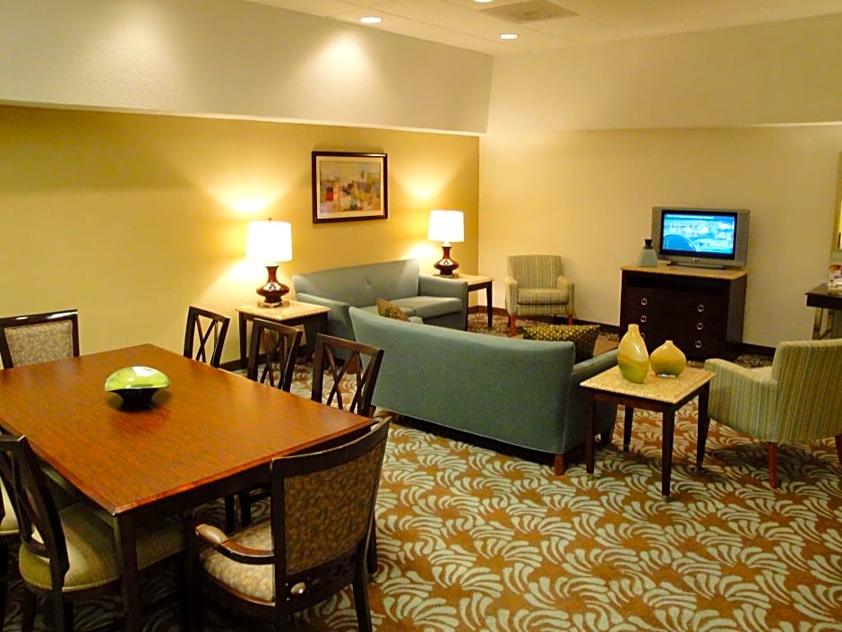 Open-plan suite, kitchen, living and dining areas, complimentary WiFi, 32-inch LCD HDTV. Enjoy your stay in this expansive suite, with separate living, dining, working and sleeping areas. Prepare a meal in the kitchen, with a microwave and small refrigerator, to enjoy at the dining table, which can seat up to six people. Rejuvenate in the comfortable bathroom, with walk-in shower, cherry wood vanity and double sink. Relax on one of the sofas or armchairs while you watch the flat-screen TV, before settling down for the night in the Sweet Dreams® by DoubleTree signature bed.